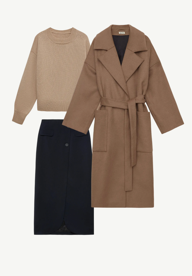 Образ от основателя бренда Нины. Этот образ легко вписывается в мой выходной день: зайти в любимую кофейню, потом выбраться на выставку и просто гулять без плана. Макси-пальто сразу добавляет стиля, джемпер будто обнимает, а юбка делает образ более женственным — всё складывается красиво и просто.