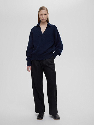 Джемпер-поло свободного кроя из кашемира и шерсти Джемпер-поло свободного кроя из кашемира и шерсти