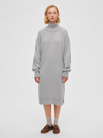 На прохладную погоду выбирайте платье свободного кроя с шерстью в составе. Это выгодный вариант на каждый день. Мягкий ворот, широкий рукав, комфортная длина, большая палитра благородных оттенков. При желании добавьте пояса и обуви на низком каблуке для более женственного настроения.